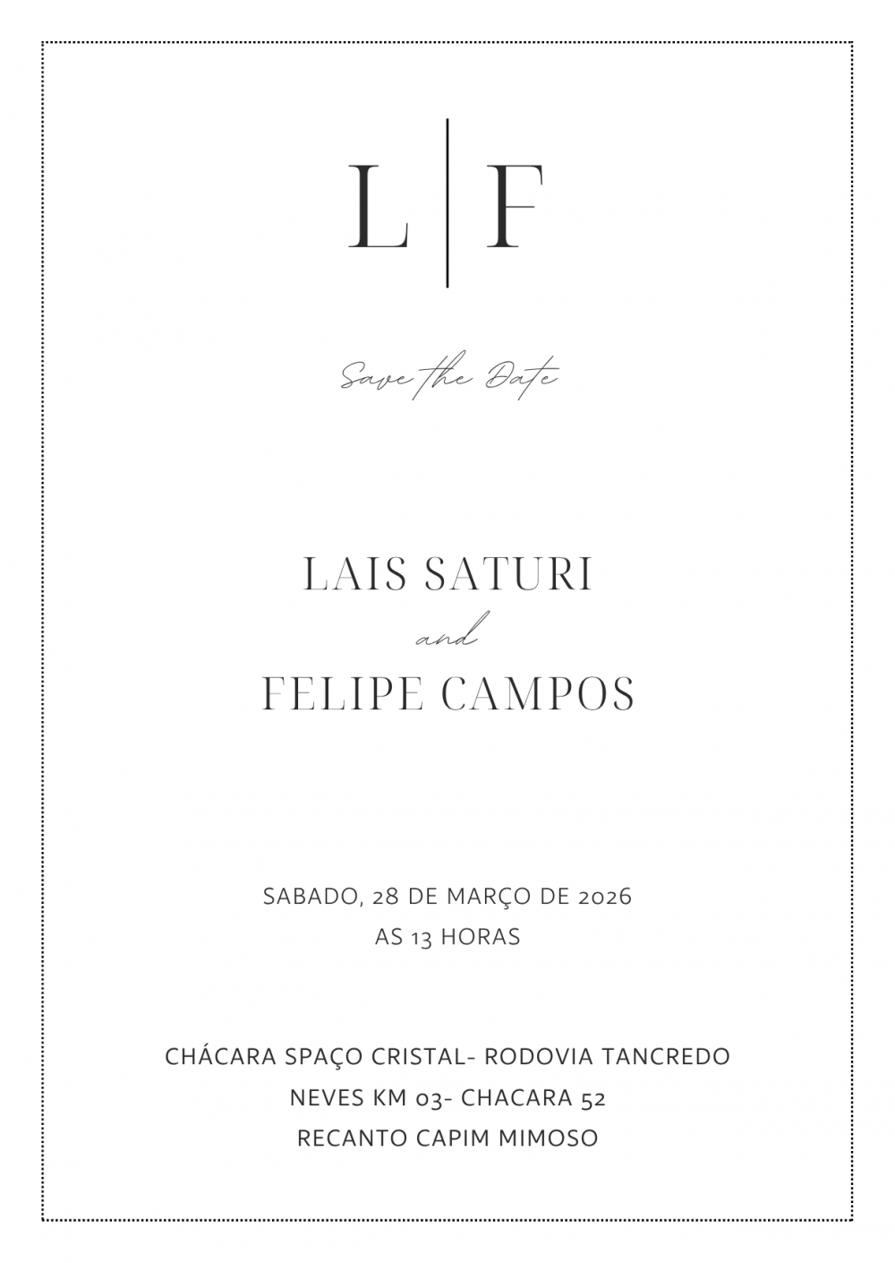 Criamos esse site para compartilhar com vocês os detalhes da organização do nosso casamento. Estamos muito felizes e contamos com a presença de todos no nosso grande dia! Aqui vocês encontrarão também dicas para o grande dia, local, trajes, cerimonia e recepção. Ah, é importante também confirmar sua presença. Para isto contamos com sua ajuda clicando no menu “Confirme sua Presença” e preenchendo os dados necessários. Para nos presentear, escolha qualquer item da Lista de Casamento, seja um item de algum dos sites, lojas físicas, ou então vocês podem utilizar a opção de cotas. Fiquem à vontade! Aguardamos vocês no nosso grande dia!